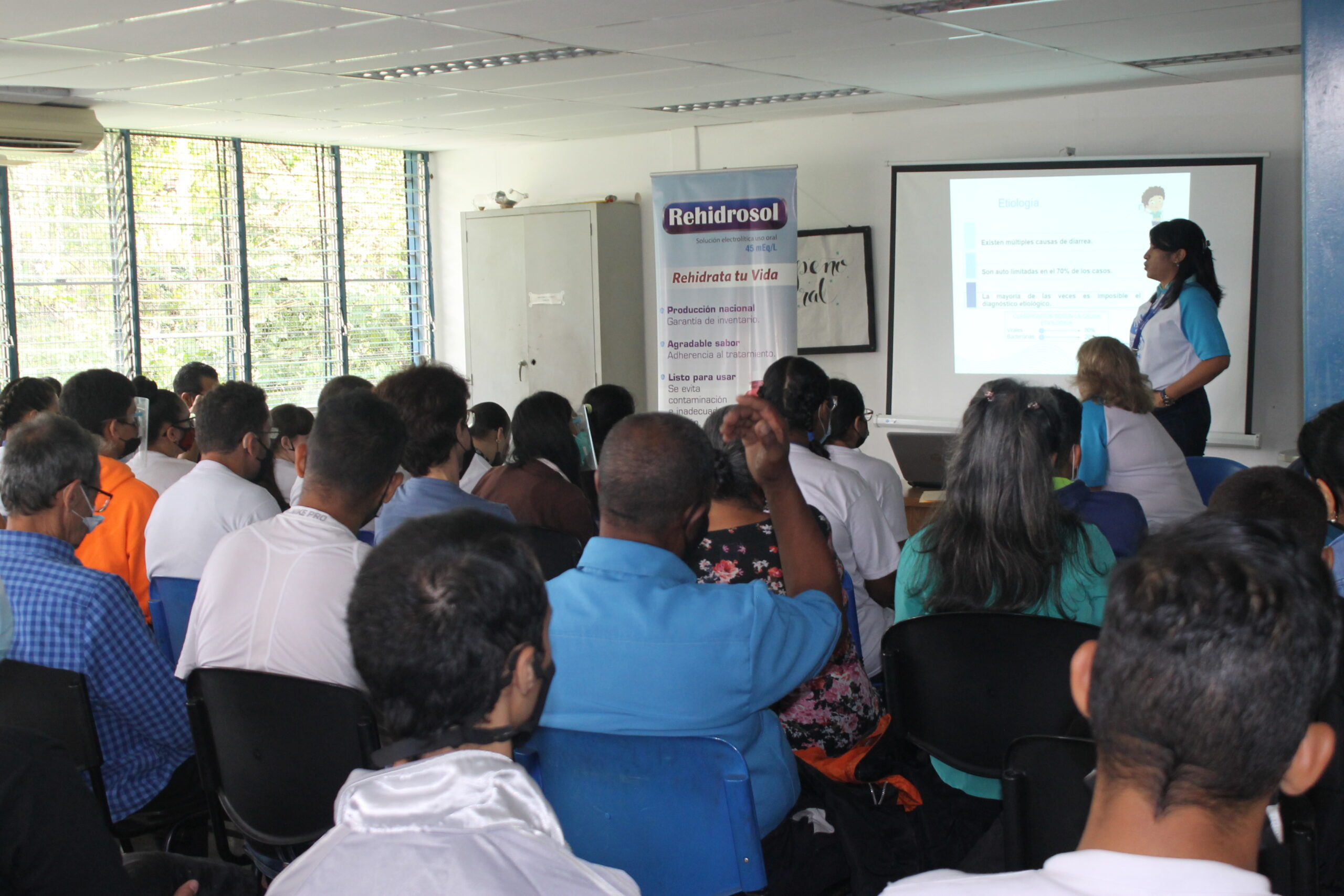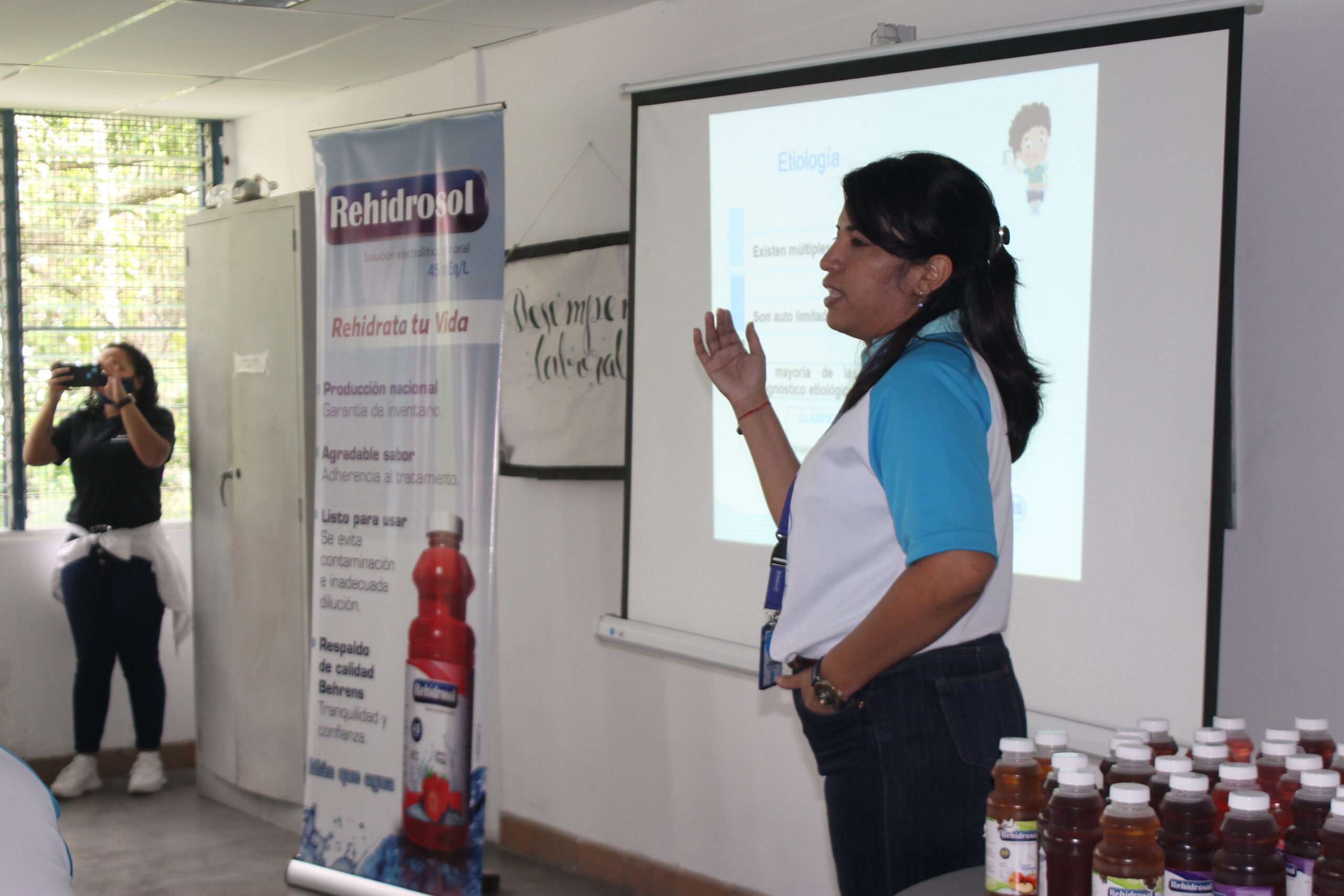 Primero, la Dra. María Virginia Fernández explicó las consecuencias de la pérdida de líquidos en el cuerpo y los riesgos que conlleva para los niños (-1 año) y para los ancianos una diarrea prolongada.